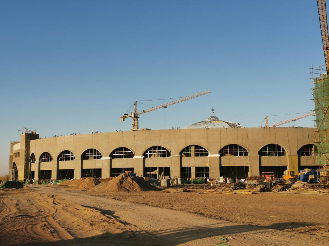 截至2019年年底,會(huì)展中心框架兩層混凝土澆筑已封頂,鋼結(jié)構(gòu)屋頂已安裝完成;藥材交易中心框架兩層混凝土澆筑封頂;占布拉道爾吉博物館三層混凝土澆筑封頂完成。下一步要進(jìn)行會(huì)展中心、藥材交易中心室內(nèi)外裝修,占布拉道爾吉博物館屋頂造型澆筑。